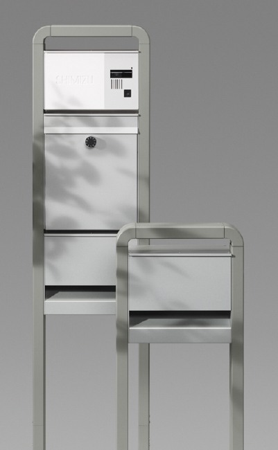2枚の平板を曲げて組み合わせ、投入口を設置する事で箱をつくるという、単純でシンプルな形に郵便ポストの機能だけを凝縮したモデル。不要な装飾をいっさい省いたミニマルな姿をベースに、光の透過する半透明ポリカーボネート2色とアルミニウムの3タイプある