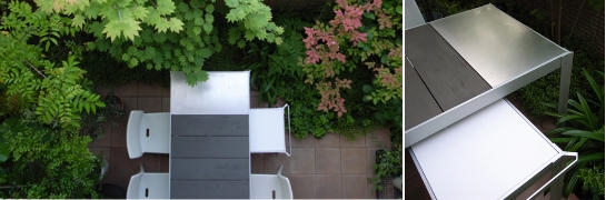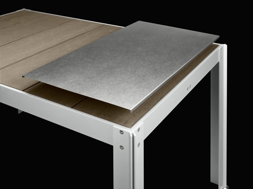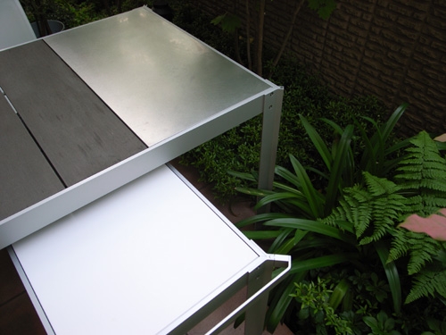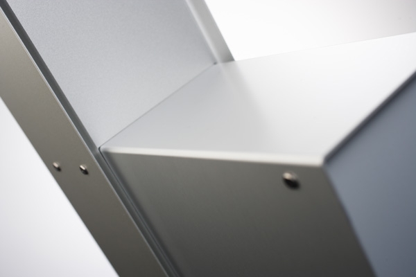 殆どのパーツはアルミニウムの押出し型材を切断してつくられており、単純な構成でリサイクルにも優れたプロダクトである。