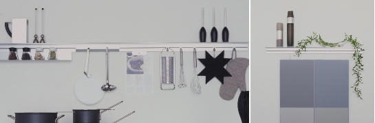 このプロダクトは、ベ−スとなるレ−ルに、置く・掛ける・吊るす・挟むと言った機能パ−ツを組合せる事で、使用者が自由に展開できるシステムとなっている。創造性を引き出すベ−スであることから、骨組・フレームと言う意味のTELAIO(伊語)という名前がつけられている。