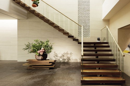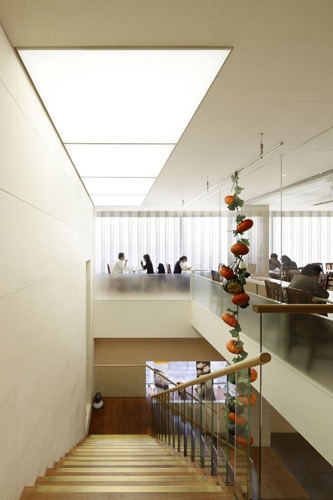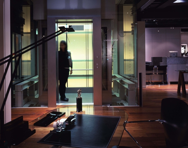 そして、2006年に地下から2階まで3層にわたるガラスボックスエレベ−タのプロジェクトで「さらに立体的な関係性を付加する」事を試みている。