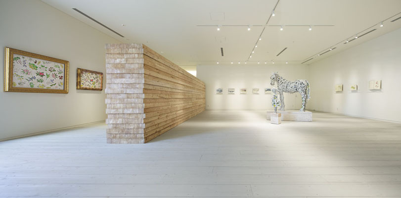 それは、程よい大きさで変化のある部屋(展示室)の連続であり、作品が制作された時代性をインテリアのモチーフとしたデザインに現れている。